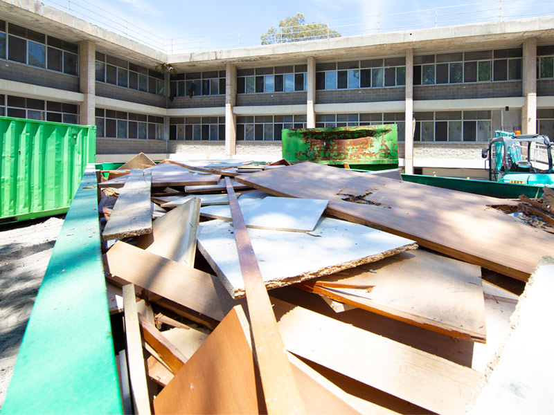 With Newcastle University’s strong commitment to contributing to a circular economy, the demolition requirements included resource recovery and diversion of materials where possible, away from landfill for beneficial re-use or repurpose in manufacturing. This included the removal and recovery of all interior products of the McMullin building by reDirect Recycling, Drumderg Services, and Central Waste Station.